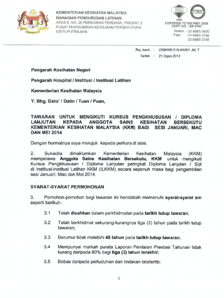 Bahagian Pengurusan Latihan Kementerian Kesihatan Pengurusan Latihan Kementerian Kesihatan Malaysia Permohonan Mengikuti Kursus Dalam Perkhidmatan Peringatan A Aa A Butir Butir