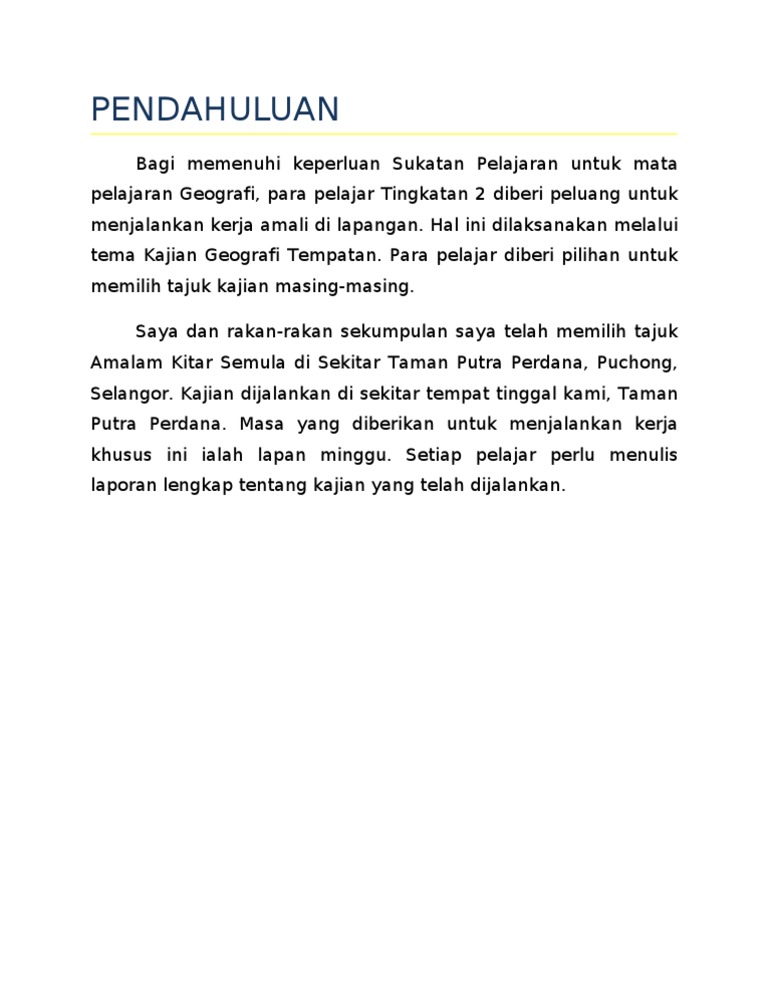 Contoh Ayat Pendahuluan Kerja Lapangan Geografi