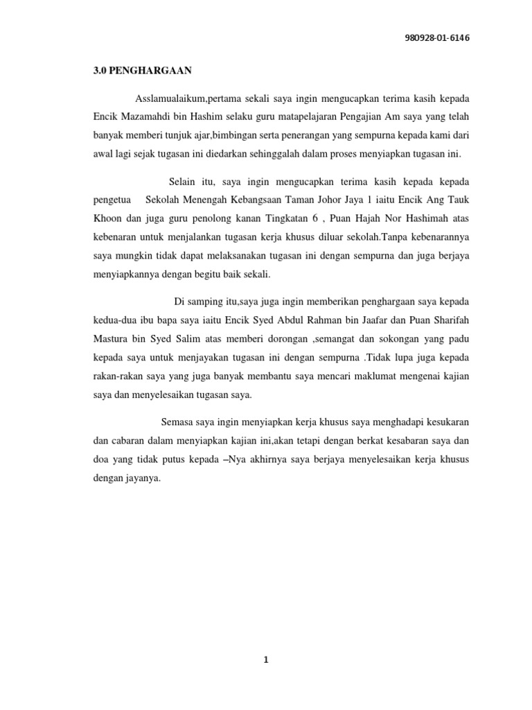 contoh karangan penghargaan kerja kursus geografi