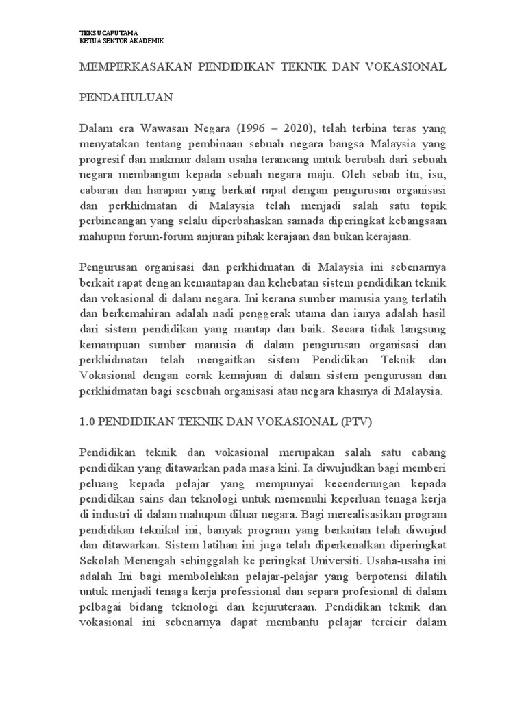 Memperkasakan Pendidikan Teknik Dan Vokasional