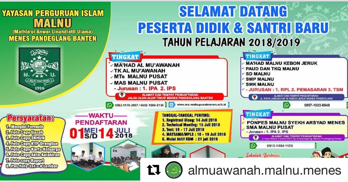 Uzivatel Ahmad Shofie Azzaki Na Twitteru Daftarkan Segera Putra Putri Anda Di Ypi Mathla Ul Anwar Li Nahdlatil Ulama Menes Mesantren Sambil Sekolah 1 Ma Had Al Mu Awanah Malnu Menes 2 Ponpes Malnu Bonjer 3