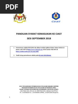 Panduan Syarat Kemasukan Ke Ciast Sesi Mei 2018 Syarat Syarat Tambahan A Permohonan Daripada Kakitangan Pdf Document